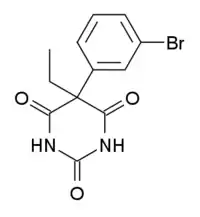 Brophebarbital is a barbiturate derivative. It has sedative and hypnotic effects and is considered to have a moderate abuse potential.[1]