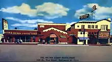 Most of the rest of the block bounded by Wilshire Boulevard, Sixth Street, Mariposa Avenue and Alexandria Avenue was occupied by the Chapman Park Hotel and Bungalows which wanted to acquire the rest of the block that it did not own, including the lot on which the original Derby had occupied.[6] After the restaurant moved out in May 1936, the building was demolished and the hotel was expanded and occupied by October of the same year.[7] The hotel itself was replaced in 1967 by the Equitable Life Building.[8][9][10]