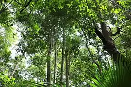 Many rainforest plants unusual to the Sydney area are present. Such as golden sassafras,[7] jackwood, scrub turpentine, wild quince, giant maidenhair, fishbone water fern, strap water fern, and the sub tropical rainforest tree, the koda.[8] The paucity of fire, dark volcanic soils and high rainfall, contribute to rainforest vegetation. The average annual rainfall is 1,400 mm (55 in) at the nearby Kissing Point Road weather station.[9]