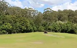 The local indigenous Australian people, the Kuringgai occupied this area for thousands of years. The emancipated convict Thomas Hyndes settled the nearby area in 1822. In 1838, Governor Darling made a 259 hectare land grant to Hyndes. He worked the land with convict labour supplying timber to the colony of New South Wales. In 1854 the area was sold to John Brown, a merchant and timber getter. He also planted orchards nearby.[3] Locally known as 'Squire Brown', he owned of a square mile of land. At his peak, he employed one hundred pairs of pit-sawyers. These were used for various projects, including the supply of timber for the Pyrmont and Glebe Island Bridges.[4] The area currently used as a sporting field was once indigenous forest, and later, a rubbish tip.