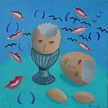In 1984 four of his paintings were purchased by the Bethlem Royal Hospital for their permanent collection. During this period, Charnley also studied the work of other artists held in the Bethlem collection, notably William Kurelek and Louis Wain, whose work 'seemed to me to have a power to move far beyond that expected of the patient as an artist. Here I saw art stripped of all esoteric and conceptual pretensions'.[11] Charnley's elaborately symbolist work from this period includes 'To The Farm' (1987), 'Grey Self-Portrait' (1986), and 'Brooch Schizophrene' (1987), paintings that have also since been acquired by Bethlem Museum of the Mind.[12]