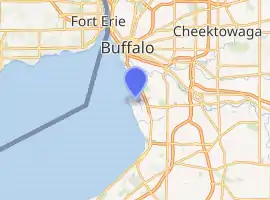 Buffalo Harbor South Entrance Light, also known as the South Buffalo Southside Light or Buffalo South Breakwater, South Entrance Light Station, is a lighthouse at Stony Point at the entrance to Buffalo Harbor, Buffalo, New York. It was established in 1903 and deactivated in 1993. It was replaced by a nearby modern post light. The lighthouse property consists of a three-story cast iron 43.5-foot (13.3 m) decommissioned light tower topped with a lantern; one-story concrete fog signal building and an L-shaped concrete pier.[2]