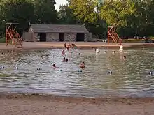 The swimming pool features a sand bottom, filtered water, lifeguards, accessible features, and is surrounded by an artificial beach. The Buffalo River provides fishing opportunities.[2]