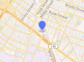Buffalo Stadium was a minor league stadium primarily used by the Houston Buffaloes from 1928 through 1961 (except for 1943 to 1945 because of World War II).[4] It was the site of the first night game between two major league baseball clubs, which took place between the Chicago White Sox and New York Giants in 1931. The Buffaloes were a farm team of the Major League St. Louis Cardinals and provided many great ballplayers to the Cardinals' success in 1930s and 1940s. The arrival of the National League Houston Colt .45s in 1962 brought an end to minor league baseball in Houston. It also went by the names of Buff Stadium and later Busch Stadium. It was bounded by Leeland Street, St. Bernard Street (present-day Cullen Boulevard), Coyle Street, and Milby Street in the East End.[5] The railroad tracks leading to Union Station, site of the Houston Astros' current ballpark, ran behind the center field wall. Near the University of Houston, the stadium was also home to the Houston Cougars baseball team during the 1940s.