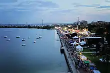 The festival has free admission and spreads along the city's waterfront Spencer Smith Park and into the downtown core. It bills itself as "Canada's Largest Free Music Festival", and utilizes several stages throughout the waterfront and downtown area.