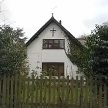 Keeper's Corner is the southerly part of the village. On the south side of its 'corner' crossroads is [18] and opposite it are allotment gardens for the center of the settlement.[10] Built around 1700 with early 20th extensions, the small house has lucarne windows and is part timber-frame on a plinth, late use timber frame design was often seen as this is part of the timber-frame prevalent region named the Weald.[18]
