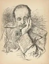 Even though he was composing music and writing music criticism in his spare time, Cui turned out to be an extremely prolific composer and feuilletonist. His public "debut" as a composer occurred 1859 with the performance of his orchestral Scherzo, Op. 1, under the baton of Anton Rubinstein and the auspices of the Russian Musical Society.[15] In 1869 the first public performance of an opera by Cui took place; this was his William Ratcliff (based on the tragedy by Heinrich Heine); but it did not ultimately have success, partially because of the harshness of his own writings in the music press.[16][17] All but one of his operas were composed to Russian texts; the one exception, Le flibustier (based on a play by Jean Richepin), premiered at the Opéra-Comique in Paris in 1894 (twenty-five years after Ratcliff), but it did not succeed either.[18] Cui's more successful stage works during his lifetime were the one-act comic opera The Mandarin's Son (publicly premiered in 1878), the three-act Prisoner of the Caucasus (1883), based on Pushkin, and the one-act Mademoiselle Fifi (1903), based on Guy de Maupassant.[19] Besides Flibustier, the only other operas by Cui performed in his lifetime outside of the Russian Empire were Prisoner of the Caucasus (in Liège, 1886) and the children's opera Puss in Boots (in Rome, 1915).[20]