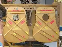 The Martin company is generally credited with developing the X-bracing system during the 1850s (possibly July 1842) although C. F. Martin did not apply for a patent on the new bracing system. During the 1850s, X-bracing was used by several makers, all of whom were German immigrants who were known to each other, and according to historian Philip Gura there is no evidence that C. F. Martin invented the system.[2] The Martin company was the first to use X-bracing on a large scale, however.
