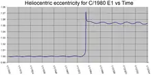 | Eccentricity | 1.057[1] (hyperbolic trajectory) 1.053 (epoch 1984+)[2] |