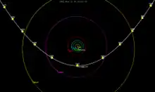 C/1980 E1 is a non-periodic comet discovered by Edward L. G. Bowell on 11 February 1980 and which came closest to the Sun (perihelion) in March 1982. It is leaving the Solar System on a hyperbolic trajectory due to a close approach to Jupiter. Since its discovery only 1I/ʻOumuamua and 2I/Borisov have been identified with a faster such trajectory.[3][4]