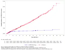 United States | RNA vaccine (modRNA encapsulated in lipid nanoparticles) | Phase III (30,000) Interventional; randomized, placebo-controlled study for efficacy, safety, and immunogenicity. Positive results from an interim analysis were announced on 15 November 2020[236] and published on 30 December 2020 reporting an overall efficacy of 94%.[237] Jul 2020 – Oct 2022, United States |