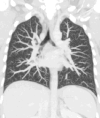 Bronchial wall thickening can be seen on lung CTs and generally (but not always) implies inflammation of the bronchi.[26] Normally, the ratio of the bronchial wall thickness and the bronchial diameter is between 0.17 and 0.23.[27]