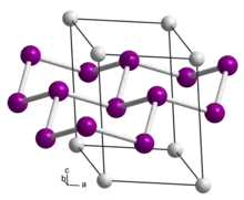 At ambient conditions calcium disilicide exists in two polymorphs, hR9 and hR18; in the hR18 structure the hR9 unit cell is stacked twice along the c axis. Upon heating to 1000 °C at a pressure of ca. 40 kBar, calcium disilicide converts to a (semi-stable) tetragonal phase.[2] The tetragonal phase is a superconductor with a transition temperature of 1.37 K[3] to 1.58 K.[4] Although there is no observable superconducting transition temperature for the trigonal/rhombohedral (i.e. hR9 and hR18 unit cells) at ambient pressure, under high pressure (>12 GPa/120 kbar) this phase has been observed exhibit superconducting transition.[5] When the trigonal phase is placed under pressures exceeding 16 GPa, there is a phase transition to an AlB2-like phase.[6]