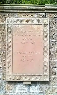 W.B. Thompson CBE and his wife Hannah Ogilvie (1836 - 1921) are interred at Western Cemetery, Dundee.