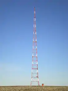 Cambridge Bay LORAN Tower was a 189 m (620 ft) tall free-standing lattice tower at Cambridge Bay, Nunavut, Canada. It was built in 1947/48 for LORAN transmissions and was the tallest freestanding structure in Canada for several years. Later the tower was used as a non-directional beacon (NDB) and was often called the "CB" beacon after the morse code letters that it transmitted on 245 kHz, with an output power of 2000 watts.[1] What appeared to be guy-wires on the tower were 'top loading' forming part of the antenna. The tower was four sided and the base 18 m (59 ft) per side or 324 m2 (3,490 sq ft).