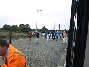 The station opened on 1 August 1906[1] and closed on 18 September 2010.[2] The rail service was replaced by a revised Bus Éireann route 370 from Monday 20 September 2010:[3]