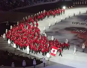 | Flag bearer | Hayley Wickenheiser (opening ceremony)[1][2] Kaillie Humphries and Heather Moyse (closing ceremony)[3][4] |