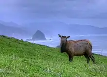 Cow elk grazing at the Ecola State Park near Cannon Beach.