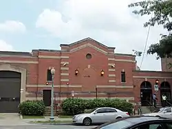 It is a two-story brick streetcar car barn designed by local architects Wood, Donn & Deming in Italian Renaissance style.[2]