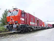 Other specialised designs based on the Windhoff MPV include a dedicated fire fighting and tunnel rescue trains (Switzerland; 2003, Austria; 2004),[7][11] and railway overhead electrification factory trains for both wire renewal, and overhead line construction. (UK; 2000, 2011)[12][13]