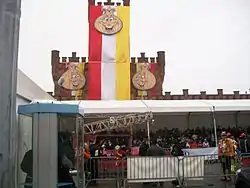 The Carnival of Aalst (Dutch: Carnaval Aalst, local dialect: Carnaval Oilsjt) or Aalst Carnival is an annual three-day event in the Belgian city of Aalst. It was formerly recognised by UNESCO as a Masterpiece of the Oral and Intangible Heritage of Humanity, a status that was removed in 2019 amid controversy over the use of anti-Semitic stereotypes during the carnival and in its promotional materials. The carnival is celebrated in the days preceding Ash Wednesday. It is mainly a street happening; the celebrants dance on the city squares and visit café after café.