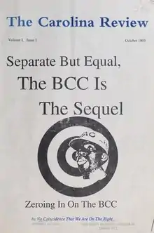 Carolina Review has often opposed many of the progressive reforms that have been put forth on campus. In 1993, the first issue of the Review opposed the construction of the Sonja Hayes Black Cultural Center on UNC's campus, claiming that "on the surface, [the BCC] seems like a good idea. ... It seems the equitable, the conscientious, the, using the liberal buzzword, 'fair' thing to do. Dig a little deeper, however, and you find that not only is it a bad idea, but it goes against the very beliefs of those who fought for civil rights."[2] This stance has been criticized for cultural insensitivity and intolerance towards cultural education.[5]