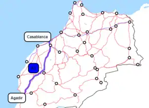 The Autoroute Casablanca–Agadir is a new main road in Morocco. Building began in 2000 and the road was inaugurated on 21 June 2010 by Prince Moulay Rachid.[1]