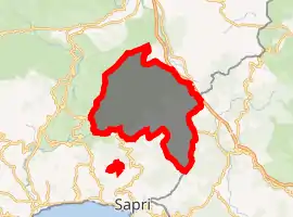 The only hamlet (frazione) is the nearby village of Battaglia (40°8′49.81″N 15°37′28.2″E), originally named Bactalearum. It is located just below the hill of Casaletto and its population was of 119.[5]