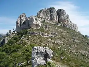 Castell de l'Airosa is a rocky mountain in the eastern side of the Ports de Tortosa-Beseit, Catalonia, Spain. Its summit has an altitude of 953.8 metres above sea level.[1]