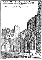 In 1612 Robert Aldworth, Mayor of Bristol, rebuilt St Peter's Hospital on a site between St Peter's Church and the Floating Harbour. This 'beautiful house with its elaborate carving' became the Bristol Mint in 1695, and was considered to be Bristol's greatest architectural loss of the Second World War.[6][7]