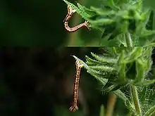 In 2019, a geometrid moth caterpillar dating back to the Eocene epoch, approximately 44 million years ago, was found preserved in Baltic amber. It was described under Eogeometer vadens.[8][9][10] Previously, another fossil dating back approximately 125 million years was found in Lebanese amber.[11][12]
