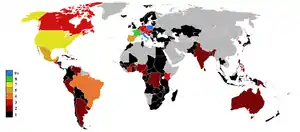 When Islam presented a serious military threat to Italy and Central Europe during the mid-15th century, Pope Nicholas V tried to unite Christendom against them but failed. He then granted Portugal the right to subdue and even enslave Muslims, pagans and other unbelievers in the papal bull Dum Diversas (1452).[14] The following year saw the Fall of Constantinople to Muslim invaders.[14] Several decades later, European colonizers and missionaries spread Catholicism to the Americas, Asia, Africa and Oceania. Pope Alexander VI had awarded colonial rights over most of the newly discovered lands to Spain and Portugal.[15] Under the patronato system, however, state authorities, not the Vatican, controlled all clerical appointments in the new colonies.[16] Thus, the 1455 Papal Bull Romanus Pontifex granted the Portuguese all lands behind Cape Bojador and allows to reduce pagans and other enemies of Christ to perpetual slavery.[17]