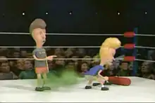 Celebrity Deathmatch was an American stop-motion claymated series created by Eric Fogel for MTV.[2] A parody of sports entertainment programs, Celebrity Deathmatch depicts various celebrities engaging in highly stylized professional wrestling matches. The series is known for its large amount of gory violence, including combatants employing different abilities and weapons to deliver particularly brutal attacks, resulting in exaggerated physical injuries.[3][4]