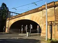 Sandstone railway bridge over Hay Street, beside Belmore Park