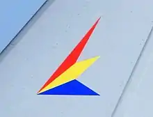 The squadron's aircraft tail markings are an arrow shape made of red, yellow and blue lines.