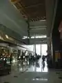 Unlike other shopping centres in the region, and owing to its unique two-stage development, the main building of Simon Fraser University's Surrey campus is located within the mall and occupies a major portion (33,000 m2 [350,000 sq ft]) of the podium floors.[6] The central atrium of the mall, similar to the hull of a ship, consists of retail space on the ground floor and provides a direct line of sight towards the campus hallways and classrooms on the upper floors.[7]