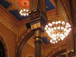 Central Synagogue (Congregation Ahawath Chesed Shaar Hashomayim;[2] Yiddish: צענטראַל-סינאַגאָגע) is a Reform synagogue located at 652 Lexington Avenue, at the corner of East 55th Street in Midtown Manhattan, New York City. It was built in 1870–1872 and was designed by Henry Fernbach in the Moorish Revival style as a copy of Budapest's Dohány Street Synagogue.[6][7] It has been in continuous use by a congregation longer than any other in the state of New York, except Congregation Berith Sholom in Troy, New York [5][8][9] and is among the oldest existing synagogue buildings in the United States.[10]
