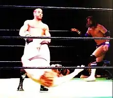 After picking up the three points needed in order to challenge for the Campeonatos de Parejas in just one weekend,[32] Castagnoli and Ares defeated The Colony (Fire Ant and Soldier Ant) on 20 March 2010, to win the championship, making Castagnoli the first two-time Campeon de Parejas in Chikara history.[33] In April Castagnoli, Ares and Tursas defeated the teams of The Osirian Portal (Amasis and Ophidian) and Sara Del Rey, Team Perros del Mal (El Alebrije, Cuije and El Orientál), Team Big Japan Wrestling (Daisuke Sekimoto, Kankuro Hoshino and Yuji Okabayashi) and The Colony (Fire Ant, Soldier Ant and Green Ant) over a three-day tournament to win the 2010 King of Trios.[34] On 23 October Castagnoli represented BDK in the torneo cibernetico match, where they faced a team composed of Chikara originals. He eliminated himself from the match by low blowing Eddie Kingston, but his plan did not work out as Kingston came back to eliminate Tursas and win the match.[35] At the season nine finale on 12 December, Castagnoli and Ares lost the Campeonatos de Parejas to Jigsaw and Mike Quackenbush.[36] On 13 March 2011, Castagnoli and Eddie Kingston finally faced each other in a grudge match fifteen months in the making, with Castagnoli emerging victorious after hitting Kingston with a chain.[37][38] In May, Castagnoli entered the 12 Large: Summit to determine the first ever Chikara Grand Champion. During the Chikarasaurus Rex weekend on 30 and 31 July, Castagnoli was involved in two main event matches, both of which were also a part of the 12 Large: Summit. After losing to Mike Quackenbush on Night 1, Castagnoli suffered an upset loss against his BDK stablemate Sara Del Rey on Night 2, after which he turned on not only Del Rey, but also Daizee Haze as she was standing up for her regular tag team partner.[39] At the following event on 27 August, Castagnoli was defeated by Icarus, eliminating him from contention in the 12 Large: Summit.[34]