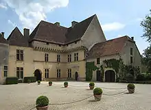In the courtyard, the façade of the Hall (1576) is an example of Renaissance architecture. Its characteristic features are carved in the golden stone of Périgord.