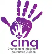 Changement Intégrité pour notre Québec (CINQ) is a minor political party in the Canadian province of Quebec founded in October 2016.[3] Its stated mission includes working for equality between men and women, promoting transparence and democratic accountability, and "stopping the transfer of wealth from the middle to the 'upper' class".[4] The party's proposals include efforts to counter corruption and political interference in the judiciary, and massive investments in education and healthcare.[3]