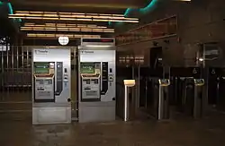 Fare Vending Machines are available at all underground stations, as well as on the baggage-claim level of Logan International Airport terminals, inside Fenway Park, and at all stations on the Green Line D branch.[1] Proof-of-Payment Validation machines are installed at select stops on the other Green Line branches.[38]
