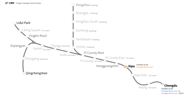 - Principal Line: Chengdu · Anjing · Xipu East · Xipu · Hongguangzhen · Pi County East · Pi County · Pi County West · Ande · Chongyi (planned) · Juyuan · Dujiangyan · Zhongxing (planned) · Qingchengshan