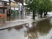 The town has a mild climate and gets well below average rainfall relative to the UK. It does though experience occasional floods. To the east of the town lies the Riverside cricket ground and Riverside Park. They were built on the flood plains of the River Wear, and are often flooded when the river bursts its banks. The town centre is subject to occasional flash flooding, usually after very heavy rain over the town and surrounding areas, if the rain falls too quickly for it to be drained away by Cong Burn. The flooding occurs at the bottom of Front Street where the Cong Burn passes under the street, after it was enclosed in concrete in 1932.[25][26]