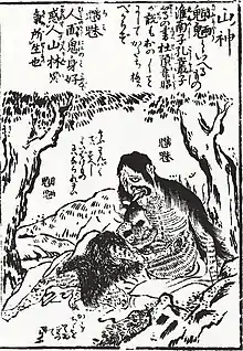 Chimei 螭魅 is joined with wangliang in the expression chimei-wangliang 魑魅魍魎 "demons and monsters; evil spirits". Since some commentators differentiate between chimei "demons of the mountains and forests" and wangliang "demons of the rivers and marshes", chimei-wangliang can mean either "'demons, monsters' generally or 'mountain and water demons' separately".[12] De Groot (1910, p. 505) describes chimei as "another demon-tribe" because the "Chinese place in their great class of hill-spirits certain quadrumana, besides actual human beings, mountaineers alien to Chinese culture, perhaps a dying race of aborigines."