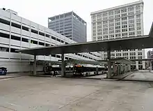 Union Station Transit Center is located adjacent to Union Station's parking garage.[9] The bus station opened in 2016, on land formerly used for a surface parking lot.[10] It features an elevator and stairway to the Amtrak underground pedestrian tunnel, allowing commuters to pass between Union Station and the bus staging area without crossing at street level.