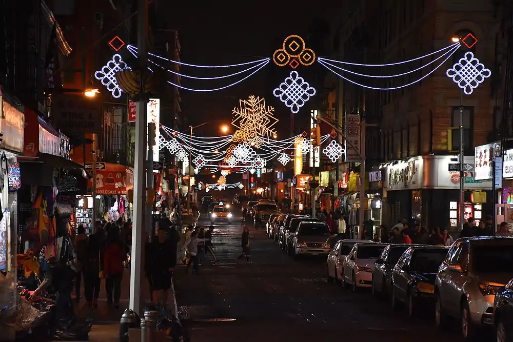 ![]() Crossing Canal Street in Chinatown, facing Mott Street toward the south | |||||||||||||||||||||||||||||||||||||||||||