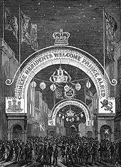 The Chinese established themselves as storekeepers, importers, furniture-makers, herbalists and in the wholesale fruit and vegetable and restaurant industries. Christian churches were built and Chinese political groups and newspapers were subsequently formed.[5] Other members of the Chinese community who lived and worked elsewhere used Chinatown to congregate with friends. The area also provided further support to new Chinese immigrants. Early in its history, during a thriving period in the 1850s, Chinatown housed "salubrious" enterprises including opium dens, brothels and boarding houses, but maintained a distinctly "entrepreneurial air".[8] By 1859, Victoria's Chinese population reached approximately 45,000, representing nearly 8.5% of the colony's total population.[9]