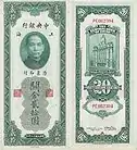 On 1 May 1930, the Central Bank of China put into circulation notes in denominations of 0.10, 0.20, 1, 5, and 10 customs gold units. These notes were printed by American Bank Note Company and dated 1930.