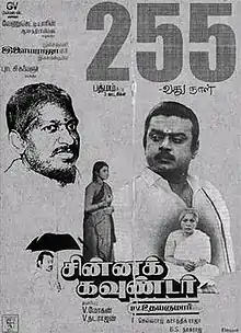 Chinna Gounder (transl. Junior Gounder) is a 1992 Indian Tamil-language drama film directed by R. V. Udayakumar and starring Vijayakanth, Sukanya, Manorama, Salim Ghouse, Sathyapriya, Goundamani, Senthil and Vadivelu. This film was remade into Telugu as Chinarayudu with Venkatesh and Vijayashanti in the lead. It was also remade in Kannada as Chikkejamanru with Ravichandran and Gautami. The film was a blockbuster hit and ran over 175 days.