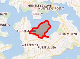 Chiswick is a suburb in the Inner West[2] of Sydney, in the state of New South Wales, Australia. It is located 9 kilometres west of the Sydney central business district in the local government area of the City of Canada Bay. Chiswick sits on the peninsula between Abbotsford Bay and Five Dock Bay, on the Parramatta River. It is surrounded by the suburbs of Abbotsford, Russell Lea and Drummoyne.